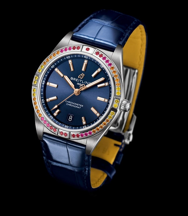 Τα ρολόγια της νέας Chronomat Automatic 36 South Sea Capsule Collection διαθέτουν ξεχωριστά, γυαλιστερά καντράν σε μπεζ, midnight blue και πράσινο της μέντας, καθώς και ταιριαστά λουράκια από αλιγάτορα με αναδιπλώμενο κούμπωμα. Ιδιαίτερα εντυπωσιακοί είναι οι χρυσοί δείκτες και τα νούμερα, καθώς και οι ενδείξεις της ώρας με διαμάντια αλλά και η στεφάνη απο πολύτιμους λίθους.