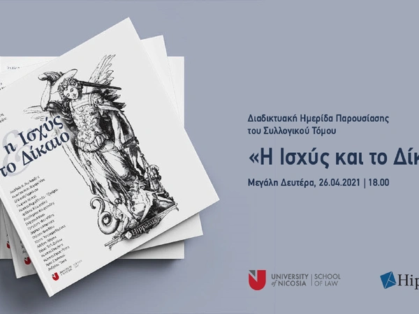 Η παρουσίαση θα λάβει χώρα τη Μ. Δευτέρα, 26η Απριλίου 2021, ώρα 18.00 και θα μεταδοθεί ζωντανά από τη Σελίδα της Νομικής Σχολής του Πανεπιστημίου Λευκωσίας στο Facebook και το κανάλι της Νομικής Σχολής στο YouTube.