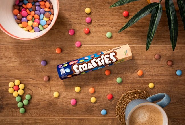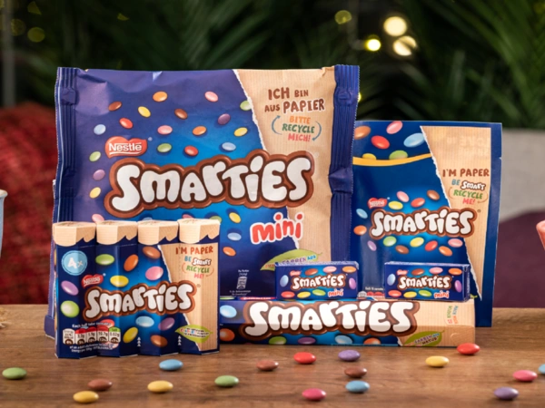 Η νέα χάρτινη συσκευασία των Smarties προέρχεται από βιώσιμες πηγές και κατασκευάζεται από επικαλυμμένο χαρτί, ετικέτες χαρτιού ή χαρτόνι. Επιπλέον, οι νέες χάρτινες συσκευασίες διαθέτουν πληροφορίες για την ορθή απόρριψή τους και προσκαλούν μικρούς και μεγάλους να γίνουν οι σύγχρονοι “σούπερ-ήρωες” της ανακύκλωσης.