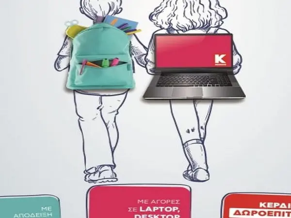 Το τέλος του καλοκαιριού σηματοδοτεί την αρχή της νέας σχολικής χρονιάςκαι οι μικροί φίλοι της τεχνολογίας, προετοιμάζονται για το μαθητικό ταξίδι της νέας τουςτάξης. Οι μαθητές, αγοράζοντας σχολικά είδη αξίας 30€ και άνω από τα βιβλιοπωλεία και καταστήματα της γειτονιάς τους*και με αγορές 299€ και άνω σε laptop, desktop, tablet, γραφεία, καρέκλες, εκτυπωτές και αναλώσιμα από τα καταστήματα Κωτσόβολος, θα κερδίζουν μία δωροεπιταγή αξίας 50€ για την επόμενη αγορά τους.