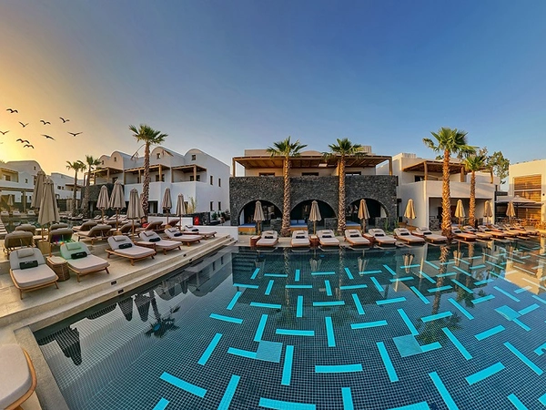 Δύο μεγάλες πισίνες με 80 αναπαυτικές ξαπλώστρες κοσμούν τον εξωτερικό χώρο και διαμορφώνουν την καρδιά του ξενοδοχείου, με το Pool Bar να αποτελεί το ιδανικό μέρος για καφέ, παγωτό και μια ποικιλία από σνακ, απεριτίφ, σούσι, πανίνι, σάντουιτς και μπέργκερ, όπως επίσης και εντυπωσιακά κοκτέιλ, που δημιουργήθηκαν για να ενισχύσουν την ιταλική πινελιά του θερέτρου.