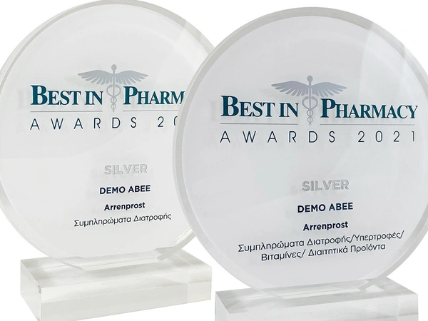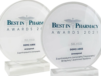 Tο συμπλήρωμα διατροφής Arrenprost της DEMO βραβεύθηκε στα Best in Pharmacy Awards 2021 με δύο πολύ σημαντικά βραβεία. Συγκεκριμένα, το σκεύασμα κατέκτησε το Silver βραβείο Marketing, ως το «Κορυφαίο λανσάρισμα» και το Silver βραβείο R&D, ως το «Καινοτόμο προϊόν της χρονιάς».