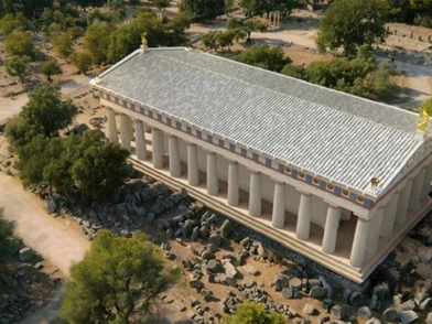 Συνολικά, το έργο αποκαθιστά ψηφιακά 27 μνημεία στο χώρο, μεταξύ αυτών, το Στάδιο, τους ναούς του Δία και της Ήρας και το εργαστήριο του Φειδία. Στην τρισδιάστατη εμπειρία, αυτά τα κτίρια ανασυντίθενται με ρεαλιστική λεπτομέρεια, με επίπονη έρευνα από διεπιστημονική ομάδα του Υπουργείου Πολιτισμού και Αθλητισμού, για να είναι όσο το δυνατόν πιο πιστά στην αρχική τους μορφή. Αυτό περιλαμβάνει ιστορικά χρονοδιαγράμματα των αλλαγών του χώρου, με την πάροδο του χρόνου, και απεικονίσεις τεχνουργημάτων από κάθε περίοδο.