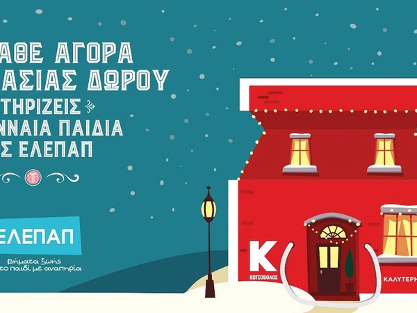 Η Κωτσόβολος και φέτος μας καλεί σε μία Κίνηση Αγάπης για το «σπίτι» της ΕΛΕΠΑΠ. Με κάθε αγορά συσκευασίας δώρου από τα καταστήματα Κωτσόβολος, ενισχύουμε τις δράσεις και το έργο της ΕΛΕΠΑΠ, και στηρίζουμε τα Γενναία Παιδιά της για μία Καλύτερη Ζωή.