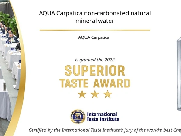 Η ανώτερη ποιότητα και κυρίως η ανώτερη γεύση των εμφιαλωμένων μεταλλικών νερών AQUA Carpatica εντυπωσίασαν τους κριτές οι οποίοι απένειμαν τρία χρυσά αστέρια στο κάθε προϊόν.