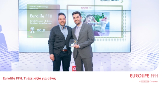 Η Eurolife FFH απέσπασε το Gold Award στην κατηγορία “Best Use of Technology for Claims” για το portal EurolifeConnect και τις δυνατότητες που προσφέρει στα e-Claims ομαδικών ασφαλιστηρίων. Διαθέσιμο 24 ώρες το 24ωρο, το portal είναι εύστοχα σχεδιασμένο ώστε να εξασφαλίζει άριστη εμπειρία χρήσης, παρέχοντας στο χρήστη πρόσβαση σε πληροφορίες όπως συμβόλαια, αιτήματα αποζημιώσεων και πληρωμή ασφαλίστρων, άμεσα, εύκολα και φορητά. Με τον τρόπο αυτό, η εξελιγμένη αυτή υπηρεσία διασφαλίζει στους πελάτες της Eurolife FFH μια αναβαθμισμένη και σύγχρονη εμπειρία εξυπηρέτησης.