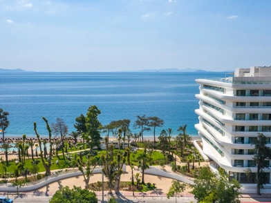 Βασισμένο πάνω σε μια φιλοσοφία που ξεκινά από τη γη με τη βοτσαλωτή παραλία που βρίσκεται μπροστά του και φτάνει ως τον ουρανό με την εντυπωσιακή ταράτσα των 550 τ.μ. που μοιάζει να αιωρείται, το Isla Brown Corinthia σε εντυπωσιάζει από την πρώτη στιγμή που το συναντάς. Λίγα λεπτά αφού έχεις στρίψει στην παλαιά Εθνική Οδό Αθηνών-Κορίνθου, ξεπροβάλλει μπροστά σου ένα φουτουριστικό, ολόλευκο κτίριο που λάμπει κάτω από τον ήλιο, σαν λείο βότσαλο. Η βραβευμένη αρχιτεκτονική ομάδα των Elastic Architects αποκατέστησε το προϋπάρχον κτίσμα και του έδωσε νέα ζωή, παίρνοντας έμπνευση από την ιστορία του τόπου, το υδάτινο και το γήινο στοιχείο, αλλά και με δημιουργικότητα που περιέχει σε ισόρροπες αναλογίες λειτουργικότητα, βιωσιμότητα και ομορφιά. Έτσι, μια σειρά από τεράστιες καμπυλωτές επιφάνειες στην εξωτερική πλευρά θυμίζουν τα βότσαλα της παραλίας που αστράφτουν κάτω από το λαμπερό ελληνικό φως, ενώ η χρωματική παλέτα του εσωτερικού του παραπέμπει στο τοπικό ηφαίστειο, το Σουσάκι, που υπήρχε στην περιοχή πριν εκατομμύρια χρόνια. Μάλιστα, όλοι οι χώροι ευεξίας του ξενοδοχείου είναι εμπνευσμένοι από την ηφαιστειακή φύση της περιοχής, δημιουργώντας μια υποβλητική και άκρως χαλαρωτική ατμόσφαιρα.