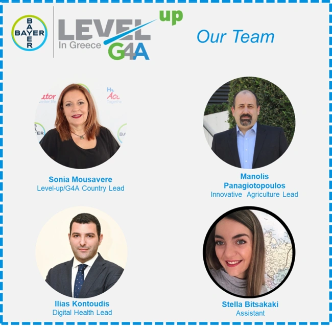 H κυρία Σόνια Μουσαβερέ, Επικεφαλής του τμήματος Επικοινωνίας της Bayer Ελλάς και Υπεύθυνη του προγράμματος Level-up|G4A για την Ελλάδα δήλωσε σχετικά: «Η Bayer Ελλάς, μια εταιρεία με ηγετική θέση στους τομείς της Υγείας και της Γεωργίας, στέκεται πάντα αρωγός σε καινοτόμα επιχειρηματικά εγχειρήματα που θέτουν ισχυρές βάσεις για το μέλλον. Η εταιρεία ενθαρρύνει την ανάπτυξη νέων ιδεών, που μας φέρνουν πιο κοντά στο όραμα μας ‘’Υγεία και Τροφή για όλους’’. Το πρόγραμμα Level-up | G4A έρχεται να προσφέρει τα εφόδια εκείνα που χρειάζονται για ανάπτυξη και συνεχή εξέλιξη, τόσο των νεοφυών επιχειρήσεων, όσο και των εξαιρετικών ερευνητικών ομάδων της χώρας μας, ώστε να αναδειχθεί περισσότερο το Ελληνικό οικοσύστημα καινοτομίας. Άλλωστε, για να ανταποκριθούμε σε ένα ταχέως μεταβαλλόμενο περιβάλλον, χρειαζόμαστε καινοτόμες λύσεις και αυτές μπορούν να επιτευχθούν, μόνο μέσω της ουσιαστικής και αποτελεσματικής συνεργασίας.»