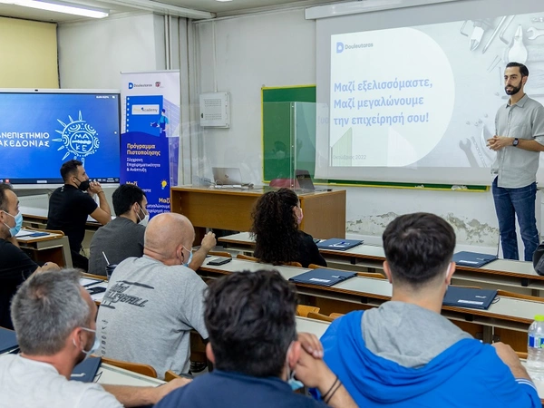 Πιστός στο όραμά του να αναδείξει την επιχειρηματική διάσταση των Τεχνικών Επαγγελμάτων, ο Douleutaras (www.douleutaras.gr) παρέχει στους επαγγελματίες συνεργάτες του το Πρόγραμμα Πιστοποίησης «Σύγχρονη Επιχειρηματικότητα & Ανάπτυξη». Για τρίτη φορά στην Αθήνα, για πρώτη φορά σε Θεσσαλονίκη και για δεύτερη φορά στη Λευκωσία, οι επαγγελματίες συνεργάτες του Douleutaras θα έχουν την ευκαιρία να αποκτήσουν χρήσιμες γνώσεις που θα τους επιτρέψουν να εξελίξουν την επιχείρησή τους, λαμβάνοντας πιστοποίηση από το πιο διακεκριμένο εκπαιδευτικό πρόγραμμα για Τεχνικούς Επαγγελματίες.