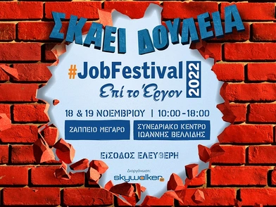 Συνεχίζοντας την επιτυχημένη δράση του, το #JobFestival 2022 του skywalker.gr δημιουργεί το κατάλληλο περιβάλλον για να μπορέσουν όλοι οι επισκέπτες να πραγματοποιήσουν με επιτυχία το ξεκίνημά τους στην αναζήτηση εργασίας ή το επόμενο βήμα στην καριέρα τους.
