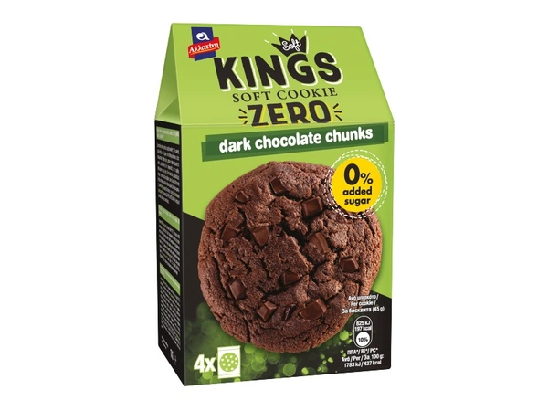 Το νέο ΑΛΛΑΤΙΝΗ Soft Kings Zero είναι ένα μεγάλο και μαλακό, σοκολατένιο μπισκότο, πλούσιο σε μεγάλα κομμάτια μαύρης σοκολάτας, με 0% προσθήκη ζάχαρης. Είναι η νέα πρόταση της μάρκας Αλλατίνη που σου προσφέρει όλη την απόλαυση που αναζητάς σε ένα μπισκότο, με λιγότερες ενοχές.