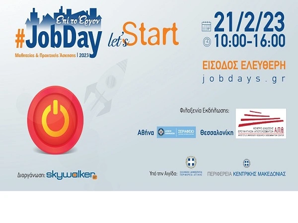 Σκοπός του #JobDay Μαθητείας & Πρακτικής Άσκησης, που πραγματοποιείται υπό την αιγίδα της περιφέρειας Αττικής και της περιφέρειας Κεντρικής Μακεδονίας είναι να δώσει το «έναυσμα» σε όσους επιθυμούν την ένταξη στην αγορά εργασίας και την επαγγελματική τους εκκίνηση.
