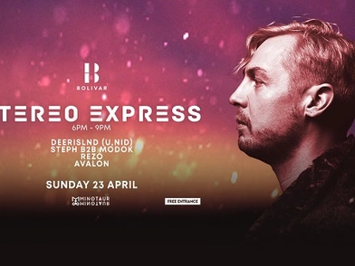 Κυριακή 23 Απριλίου Bolivar & Minotaur-Minotaur παρουσιάζουν τον δημοφιλή dj/producer Stereo Express. Ο Γερμανός καλλιτέχνης έχει αναγνωριστεί το 2020 ανάμεσα στους 10 κορυφαίους producers melodic techno παγκοσμίως και έρχεται για πρώτη φορά στο Bolivar για ένα μαγευτικό ηλιοβασίλεμα γεμάτο μελωδία. Μαζί του οι Deerislnd (u.nid), Steph b2b Modok, Rezo, Avalon.