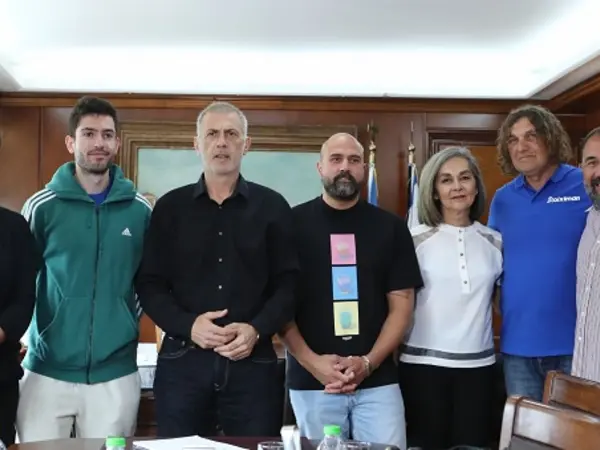 Στο πλαίσιο της διεξαγωγής του Piraeus Street Long Jump, ο Δήμαρχος Πειραιά κ. Γιάννης Μώραλης υποδέχθηκε σήμερα στο Δημαρχείο Πειραιά μαζί με την Πρόεδρο του ΣΕΓΑΣ κα Σοφία Σακοράφα, την Αντιδήμαρχο Εξωστρέφειας κα Ανδριάνα Ζαρακέλη, τον Πρόεδρο του Ο.Π.Α.Ν. κ. Ιωσήφ Βουράκη και τον Σύμβουλό του σε θέματα αθλητισμού κ. Νίκο Γέμελο, τον χρυσό Ολυμπιονίκη και παγκόσμιο πρωταθλητή στο άλμα εις μήκος Μίλτο Τεντόγλου και τον Ομοσπονδιακό προπονητή αλμάτων και προπονητή του Μίλτου Τεντόγλου κ. Γιώργο Πομάσκι.