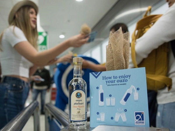 Το Ούζο Πλωμαρίου σε συνεργασία με το αεροδρόμιο της Αθήνας προσέφερε στους επιβάτες των πτήσεων που πραγματοποιήθηκαν στις 2 Ιουνίου το αγαπημένο τους Ούζο: Λίγο μετά την προσγείωση τους στην Ελλάδα, οι πρώτοι ταξιδιώτες του Καλοκαιριού, παρέλαβαν μια φιάλη από το 100% διπλής απόσταξης Ούζο Πλωμαρίου. Το πρωτότυπο αυτό καλωσόρισμα στους αφιχθέντες επιβάτες έγινε στην αίθουσα αφίξεων του αεροδρομίου και συνοδευόταν από έναν μίνι οδηγό Ουζοποσίας.