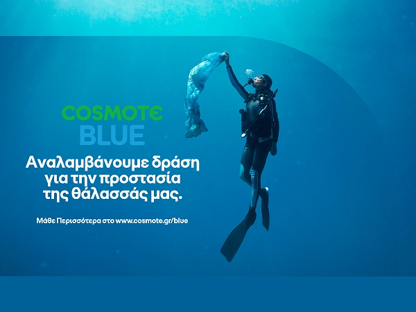 Στην πρωτοβουλία COSMOTE BLUE για την προστασία των ελληνικών θαλασσών προχωρά η COSMOTE, επιβεβαιώνοντας τη δέσμευσή της για την προστασία του περιβάλλοντος. Βασικός στόχος της πρωτοβουλίας είναι η απομάκρυνση της πλαστικής ρύπανσης από το θαλάσσιο περιβάλλον της Ελλάδας, που αποτελεί πηγή ζωής και αναπόσπαστο κομμάτι της ελληνικής πραγματικότητας και κουλτούρας. Η απομάκρυνση των πλαστικών συμβάλλει στην προστασία του οικοσυστήματος και της βιοποικιλότητας στις θάλασσες και εν τέλει σε ένα υγιές περιβάλλον για τον άνθρωπο.