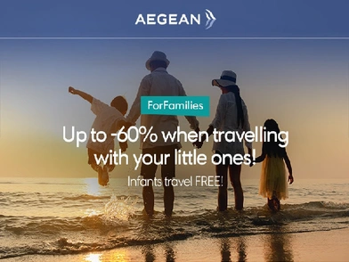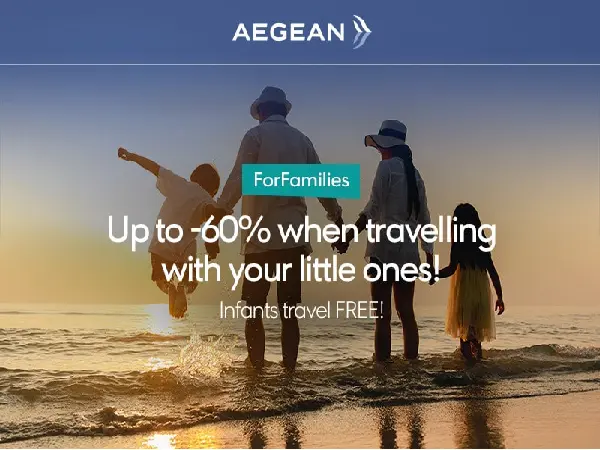 Τώρα είναι η στιγμή να κλείσεις τις καλοκαιρινές σου διακοπές με επιπλέον έκπτωση με τη νέα προσφορά της Aegean που προσφέρει έκπτωση στις οικογένειες!