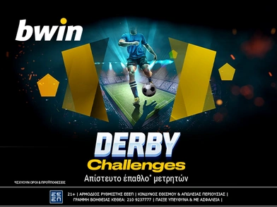 Παίζουν απίστευτα έπαθλα* μετρητών από τα Derby Challenges; Παίζει bwin! Η ποδοσφαιρική δράση ξεκινά στην κορυφαία στοιχηματική πλατφόρμα κι εσύ έχεις παίρνεις την μπάλα στα… χέρια σου. Τα έπαθλα* μετρητών έρχονται στην bwin.