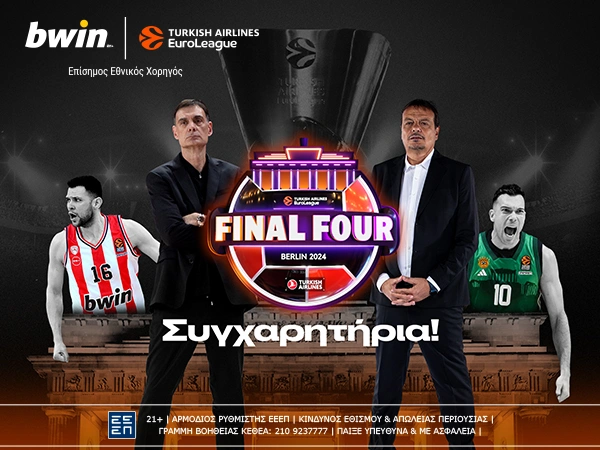 Η αντίστροφη μέτρηση για το κορυφαίο ραντεβού του ευρωπαϊκού μπάσκετ στο Βερολίνο άρχισε! Η bwin, Επίσημος Εθνικός Χορηγός της Turkish Airlines EuroLeague, θα βρίσκεται και πάλι εκεί μαζί με τις δύο ομάδες που θα εκπροσωπήσουν την Ελλάδα στο Final Four. Ολυμπιακός και Παναθηναϊκός, μαζί με την Ρεάλ Μαδρίτης και τη Φενερμπαχτσέ, ετοιμάζονται για μοναδικές… παραστάσεις με φόντο το τρόπαιο του Πρωταθλητή Ευρώπης. Της κορυφαίας ομάδας για το 2024!