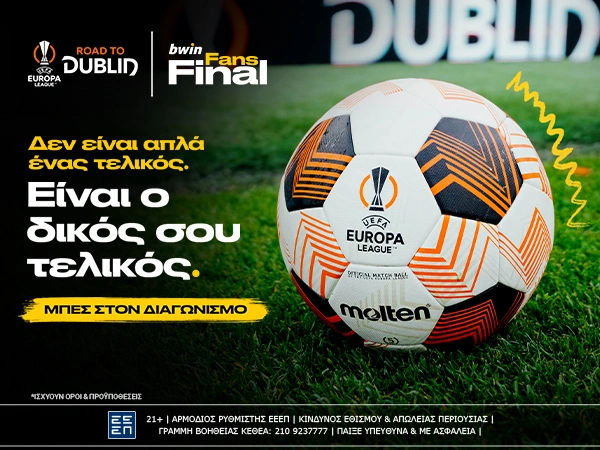 Τι είναι το bwin Fans Final; Ο απόλυτος ποδοσφαιρικός διαγωνισμός. Μέσα από το bwin Fans Final διεκδικείς VIP ταξίδι με προορισμό το Δουβλίνο και κάνεις δικά σου εισιτήρια, για να δεις τον τελικό του UEFA Europa League μέσα από την "Dublin Arena"! Έχεις δωρεάν διαμονή σε ξενοδοχείο με πρωινό και την επόμενη μέρα έρχεται το καλύτερο…
