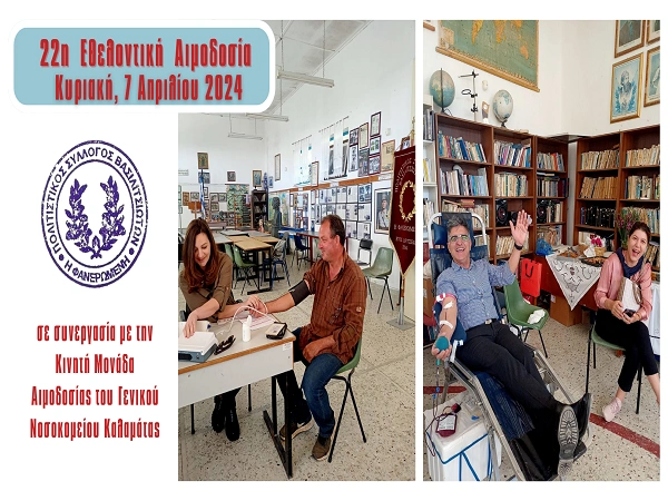 Ευχαριστούμε θερμά το τμήμα Αιμοδοσίας του Γενικού Νοσοκομείου Καλαμάτας για την υποδειγματική συνεργασία με το Σύλλογό μας.
