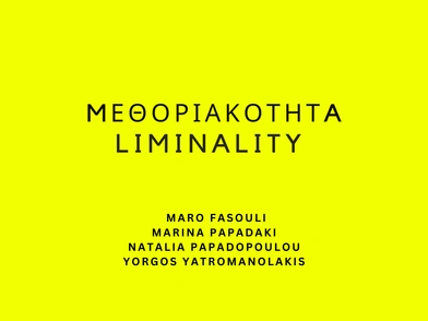 ΜΕΘΟΡΙΑΚΟΤΗΤΑ Ι LIMINALITY ΓΙΩΡΓΟΣ ΓΙΑΤΡΟΜΑΝΩΛΑΚΗΣ Ι ΜΑΡΙΝΑ ΠΑΠΑΔΑΚΗ ΝΑΤΑΛΙΑ ΠΑΠΑΔΟΠΟΥΛΟΥ Ι ΜΑΡΩ ΦΑΣΟΥΛΗ