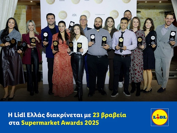 Η Lidl Ελλάς αναδείχθηκε σε έναν από τους μεγάλους νικητές των Supermarket Awards 2025, αποσπώντας συνολικά 23 βραβεία – 6 Gold, 8 Silver και 8 Bronze, καθώς και την ειδική διάκριση "Top Rated Project". Η πολυδιάστατη αυτή επιτυχία επιβεβαιώνει τη δέσμευση της εταιρείας στην καινοτομία, την ποιότητα και τη βιώσιμη ανάπτυξη.
