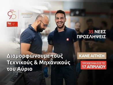 Η Παπαστράτος αναζητώντας τους «Τεχνικούς του Αύριο» επιθυμεί να προσελκύσει υποψηφίους με τεχνικό εκπαιδευτικό υπόβαθρο στη μηχανολογία, την ηλεκτρολογία και τους αυτοματισμούς, με διάθεση για συνεχή μάθηση και ανάπτυξη, καλή γνώση της αγγλικής γλώσσας, καθώς και ικανότητα προσαρμογής σε ένα δυναμικό βιομηχανικό περιβάλλον. Οι νέοι Process Technicians θα ενταχθούν στην καθημερινή λειτουργία της παραγωγικής μονάδας της εταιρείας στον Ασπρόπυργο, συμβάλλοντας στη διασφάλιση της ποιότητας των προϊόντων, τη βελτιστοποίηση της παραγωγικής διαδικασίας, την τήρηση των υψηλών προτύπων ασφάλειας και βιωσιμότητας και τη συνεχή βελτίωση των διαδικασιών μέσα από συνεργασία με τις ομάδες παραγωγής και ποιότητας.