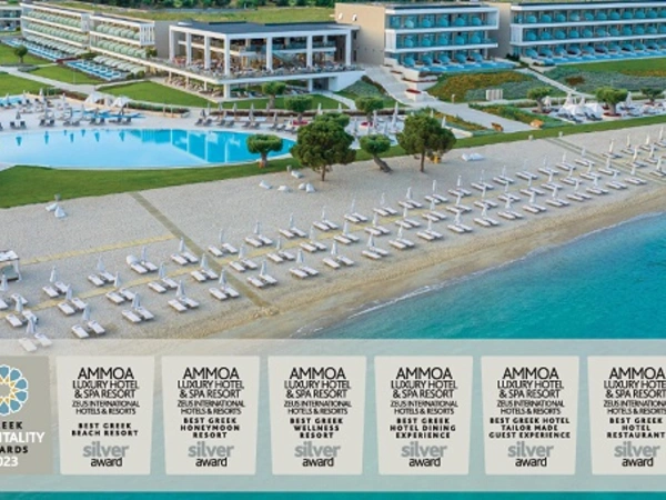 Στην κατηγορία “Best Greek City Wellness Resort” το Dolce Athens Attica Riviera παρέλαβε το χρυσό βραβείο ενώ παράλληλα διατήρησε τον τίτλο για τέταρτη συνεχή χρονιά ως “Best Greek MICE Resort”. To Wyndham Grand Crete Mirabello Bay, ένα από τα διαμάντια του Ομίλου, βραβεύτηκε με τρία χρυσά ως “ Best Greek Family Resort”, “Best Greek Hotel Marina”, “Best Greek Hotel Tailormade Guest Experience” και με έξι ασημένια στις κατηγορίες “Best Greek Honeymoon Resort” , “Top Greek Resort 2023”, “Best Greek MICE Resort”, “Best Greek Hotel Dining Experience”, “Best Greek Hotel Restaurant” και “Best Greek Beach Resort” ενώ το Ajul Luxury Hotel & Spa Resort, από τον πρώτο χρόνο λειτουργίας του, κατάφερε να συγκεντρώσει το χρυσό ως “Best Greek New Resort” και τέσσερα ασημένια βραβεία στις κατηγορίες “Best Greek All Inclusive Resort” , “Best Greek Family Resort”, “Best Spa Resort” και “Best Greek Villa Resort”. To Eretria Hotel & Spa παρέλαβε το χάλκινο στην κατηγορία “Best Greek All Inclusive Hotel”. To AMMOA Luxury Hotel & Spa Resort παρέλαβε πέντε ασημένια βραβεία για τις κατηγορίες “Best Greek Beach Resort”, “Best Greek Honeymoon Resort”, “Best Greek Hotel Dining Experience”, “Best Greek Hotel Tailor-made Guest Experience”, “Best Greek Hotel Restaurant” διατηρώντας παράλληλα για δεύτερη συνεχή χρονιά την ασημένια πορεία του στις κατηγορίες “Best Greek Wellness Resort” και “Best Greek Family Resort”.