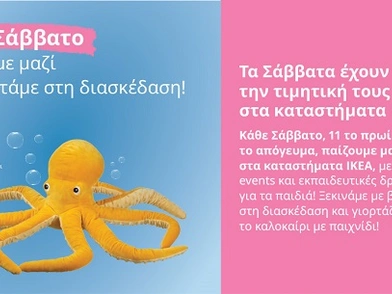 Κάθε Σάββατο, από τον Ιούνιο έως και τον Δεκέμβριο, τα καταστήματα ΙΚΕΑ μεταμορφώνονται στον πιο διασκεδαστικό προορισμό με έναν νέο κύκλο παιδικών δράσεων που συνδυάζει δημιουργική απασχόληση, ψυχαγωγία και εκπαιδευτικό χαρακτήρα. Οι μικροί επισκέπτες θα έχουν την ευκαιρία να συμμετέχουν σε θεματικές δραστηριότητες, διαφορετικές κάθε μήνα, γεμίζοντας τους διαδρόμους των καταστημάτων με χρώμα, θετική ενέργεια και χαμόγελα.