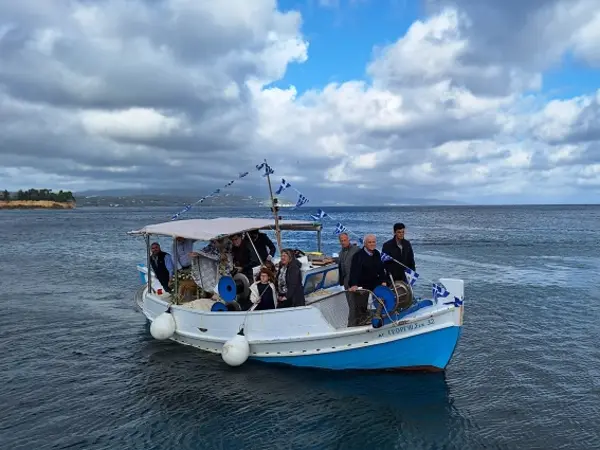 Μετά το τέλος της Θείας Λειτουργίας, στην έδρα του Δήμου, την Πύλο, έγινε η ρίψη του Τιμίου Σταυρού κι ο Αγιασμός των υδάτων στο λιμάνι της πόλης, υπό τις εορταστικές μελωδίες της Δημοτικής Φιλαρμονικής Ορχήστρας Πύλου - Νέστορος.