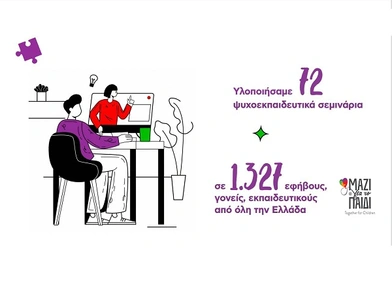 • Υλοποιήθηκαν 72 ψυχο-εκπαιδευτικά σεμινάρια σε 1.327 σε εφήβους, γονείς, εκπαιδευτικούς από όλη την Ελλάδα
