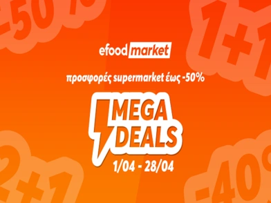 Κάθε εβδομάδα, οι καταναλωτές θα βρίσκουν νέες προσφορές, επιλογές 1+1 και άλλα Mega Deals σε επώνυμα προϊόντα supermarket σε όλες τις κατηγορίες του efood market!
