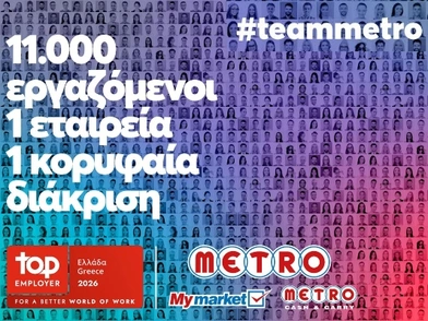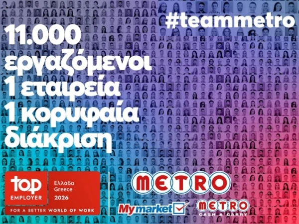 Η METRO AEBE (My market και METRO Cash and Carry), έλαβε την πολύ σημαντική πιστοποίηση Top Employer 2026, από τον διεθνώς αναγνωρισμένο οργανισμό Top Employers Institute, κατακτώντας τη σπουδαία αυτή διάκριση για δεύτερη συνεχόμενη χρονιά, επιβεβαιώνοντας την πολυετή προσήλωσή της στη φροντίδα και στην υποστήριξη των ανθρώπων της.