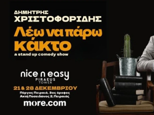 Ο Δημήτρης Χριστοφορίδης επιστρέφει φέτος με τη νέα του stand-up comedy παράσταση «Λέω να πάρω Κάκτο», και το Nice n Easy Piraeus Tower τον υποδέχεται στον χώρο του Cloud 9 στον τρίτο όροφο του εμβληματικού Πύργου Πειραιά, μετατρέποντας τις βραδιές μας σε γιορτή γέλιου, ρεαλισμού και καυστικού χιούμορ.