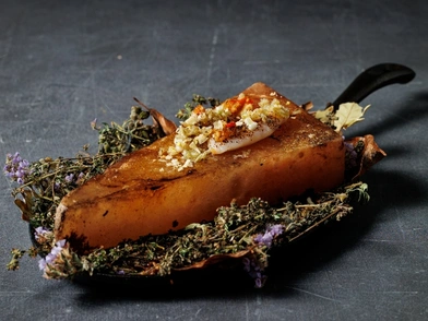 Το ενδιαφέρον είναι ότι σε αυτή, την τόσο κονσεπτική προσέγγιση του σεφ εμπεριέχεται και όλη η μαγειρική του φιλοσοφία σχετικά με τη βιωσιμότητα (sustainability) στις κουζίνες, η οποία ξεκινάει από το στόχο της μηδενικής, ει δυνατόν, παραγωγής απορριμμάτων (zero waste) και καταλήγει σε μια συνεχή αναζήτηση νέων τρόπων βέλτιστης αξιοποίησης τους στο μαγείρεμα.