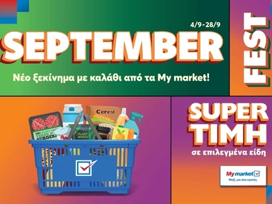Τα My market υποστηρίζουν αυτή την ανάγκη και είναι δίπλα σε όλους εκείνους που θέλουν να κάνουν μία νέα αρχή παρουσιάζοντας το SEPTEMBER FEST, το οποίο έχει ήδη ξεκινήσει από τις 4/9, θα διαρκέσει έως και τις 28/9 φιλοξενώντας τρεις διαφορετικές ενέργειες. Πιο συγκεκριμένα, τα fests που θα υλοποιηθούν μέσα σε αυτό το διάστημα είναι τα εξής: