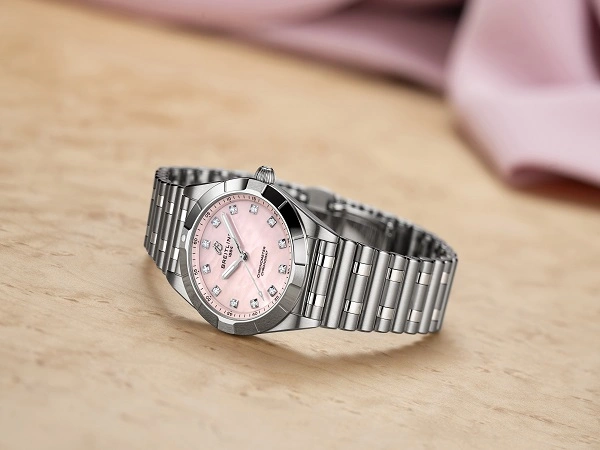 Το Chronomat 28 προσδιορίζεται εκ νέου και είναι λεπτό,αποτελώντας μια κομψή εκδοχή του κλασικού ρολογιού της δεκαετίας του '80. Θα το βρείτε σε μια ποικιλία διαθέσιμων επιλογών κομψών καντράν. Κάθε ένα από αυτά είναι κατασκευασμένο από βιώσιμα και εργαστηριακά διαμάντια ανιχνεύσιμης προέλευσης.