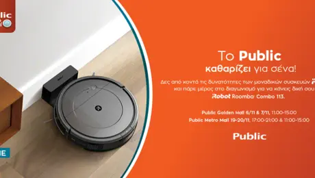 05.11.21 15:22«Πάτα το κουμπί» στο Public και απόκτησε τις καλύτερες μικρές οικιακές συσκευές! Γνώρισε τις ρομποτικές σκούπες iRobot: 6 & 7 Νοεμβρίου στο Public Golden Hall και 19 & 20 Νοεμβρίου...