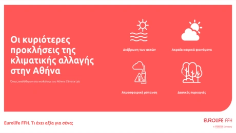 09.06.21 15:55Οι Global Shapers Athens Hub και η Eurolife FFH παρουσιάζουν τα αποτελέσματα του 1ου Athens Climate Lab Το workshop κατέγραψε προτάσεις για την αντιμετώπιση της κλιματικής αλλαγής στην Αθήνα.