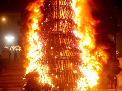 Τα κάλαντα έδωσαν τη θέση τους στα «εξεγερμένα κάλαντα», όπως ονομάστηκαν και το Χριστουγεννιάτικο δέντρο του Συντάγματος τυλίχθηκε στις φλόγες, "γεννώντας" έτσι μια από τις πιο εμβληματικές εικόνες.
