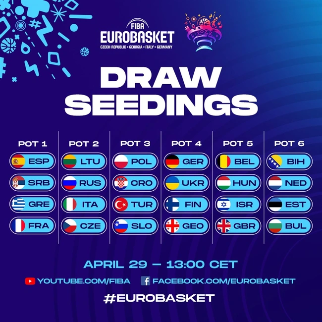 Υπομονή μέχρι τις 29 Απριλίου. Η Ελλάδα και οι υπόλοιπες 23 ομάδες που θα αγωνιστούν στο EuroBasket 2022 θα μάθουν τους αντιπάλους τους, στην πρώτη φάση. Η FIBA ανακοίνωσε τα γκρουπ δυναμικότητας, με τις Ισπανία, Σερβία, Ελλάδα και Γαλλία να βρίσκονται στο 1ο γκρουπ.
