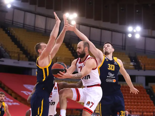 Οι φιλοξενούμενοι παρά τις απουσίες τους ξεκίνησαν καλά στην επίθεσή τους και με εύστοχα τρίποντα από Βιάλτσεφ και Καράσεφ έμειναν κοντά στο σκορ. Στην άλλη πλευρά ο Βεζένκοβ έκανε ό,τι ήθελε και με 8 δικούς του πόντους έκανε το 14-13 (6’). Ο Σπανούλης με 5 ασίστ πρόσφερε έτοιμα καλάθια σε Έλις και Χαραλαμπόπουλο κι η διαφορά ανέβηκε (19-13, 7’).
