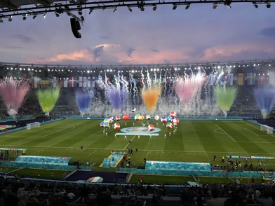 Ο τενόρος, Αντρέα Μποτσέλι, ερμήνευσε το «Nessun Dorma», ενώ μέσω ψηφιακής παράστασης διασκέδασαν τον κόσμο οι αστέρες των U2, Μπόνο και Ετζ, μαζί με τον dj Μάρτιν Γκάριξ, τη στιγμή που πυροτεχνήματα εκτοξεύτηκαν από την οροφή του σταδίου, αφήνοντας ένα ίχνος χρωματισμένου καπνού μέσα στον αγωνιστικό χώρο. Αν και λίγοι σε αριθμό, οι φίλαθλοι χαιρέτησαν την επιστροφή τους στις κερκίδες μετά από ένα χρόνο, όταν οι περισσότεροι αγώνες διεξάγονταν σε άδεια στάδια για την αποφυγή της εξάπλωσης του κορονοϊού.