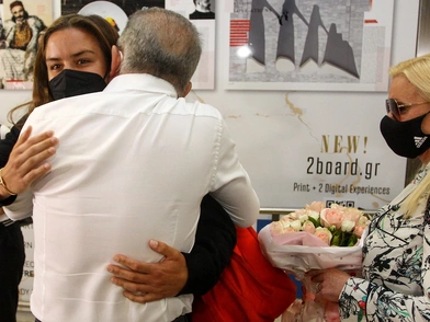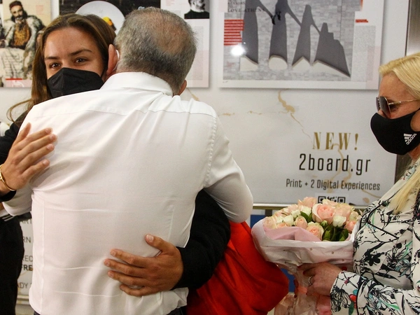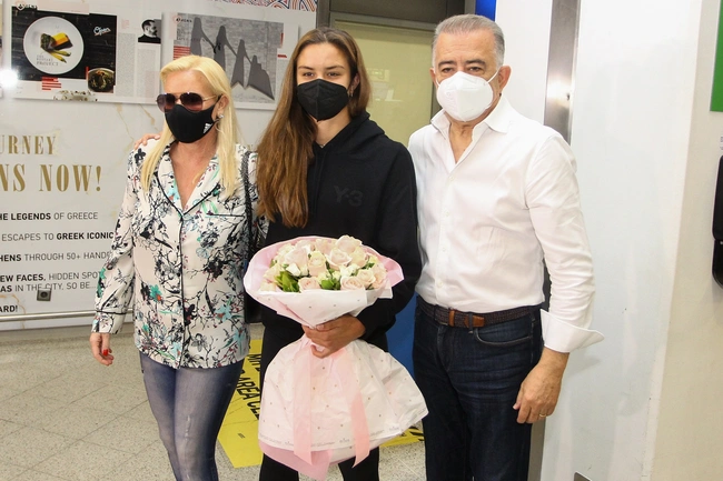 Η Ελληνίδα τενίστρια έπεσε αμέσως στην αγκαλιά των γονιών της, της μητέρας της Αγγελικής Κανελλοπούλου και του πατέρα της Κώστα Σάκκαρη. Στο αεροδρόμιο «Ελευθέριος Βενιζέλος» την περίμεναν και αρκετοί πολίτες για να την χειροκροτήσουν ενώ η Μαρία Σάκκαρη προχώρησε και στις πρώτες της δηλώσεις στις κάμερες που την περίμεναν.