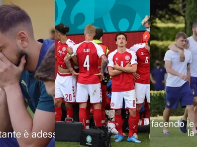Τα μέλη του προπονητικού τιμ της Ιταλίας ρωτούν μήπως ο Έρικσεν δέχθηκε κάποιο χτύπημα από τη μπάλα ή κάτι που να εξηγεί την κατάρρευση. Ο Μπεράρντι αναφωνεί «έχω ανατριχιάσει». Ο Ντοναρούμα κλείνει τα μάτια του ενώ κοιτάει και προς την άλλη κατεύθυνση και στη συνέχεια περιγράφει στην κάμερα, τα συναισθήματα που ένιωσε εκείνη τη στιγμή.