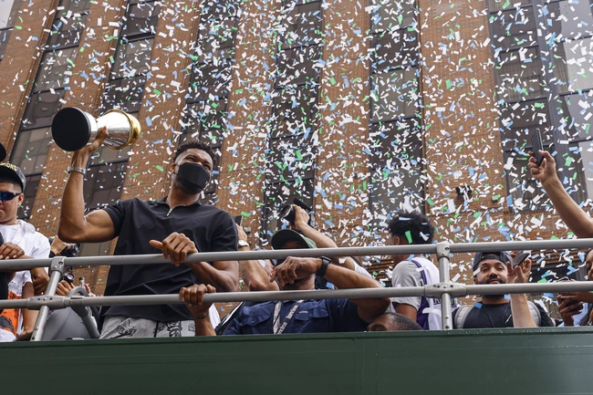 Ένα ατελείωτο πάρτι στήθηκε την Πέμπτη στο Μιλγουόκι με τους φίλους του Μπακς να αποθεώνουν τον Γιάννη Αντετοκούνμπο και την παρέα του μετά την κατάκτηση του τίτλου στο NBA έπειτα από μισό αιώνα. Ο "Greek Freak" και οι συμπαίκτες του έζησαν μοναδικές στιγμές λατρείας με τον κόσμο να τους αποθεώνει τόσο κατά τη διάρκεια της καθιερωμένης παρέλασης στην πόλη όσο και στην εξέδρα που είχε στηθεί στο τέλος της διαδρομής.