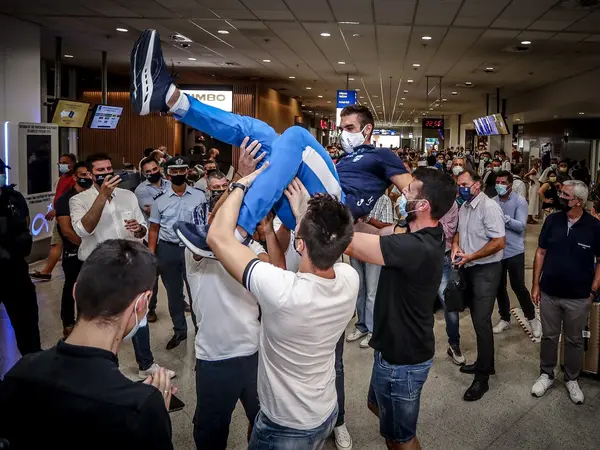 Ορισμένοι από τους ανθρώπους που περίμεναν τον χρυσό Ολυμπιονίκη του Τόκιο τον σήκωσαν στα χέρια, με τον Έλληνα πρωταθλητή να μην κρύβει τη συγκίνησή του με την αποθεωτική υποδοχή που του έγινε.