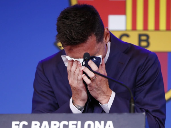 Ο Μέσι ξεκίνησε με δάκρυα στα μάτια την αποχαιρετιστήρια συνάντησή του με δημοσιογράφους, παρουσία συμπαικτών του στο «Καμπ Νόου», ενώ την ίδια ώρα εκατοντάδες οπαδοί της Μπαρτσελόνα ήταν συγκεντρωμένοι έξω από το γήπεδο. Πριν καν πει μια λέξη, έδειχνε συντετριμμένος στην καρέκλα του. Ακόμα και η φωνή του ήταν «ραγισμένη», βραχνή, μερικές φορές μόλις κατανοητή και πνιγμένη στα δάκρυα. Σιγά-σιγά μπόρεσε να σταθεί καλύτερα, αλλά η αρχή ήταν συγκλονιστική, λόγω της συναισθηματικής φόρτισης. Αντιμέτωπη με το συνεχές κλάμα του, η σύζυγός του, Αντονέλα Ροκούτσο, η οποία βρισκόταν στην πρώτη σειρά στο Auditori 1899, του έδωσε ένα μαντήλι, με το οποίο σκούπισε τα δάκρυα του.