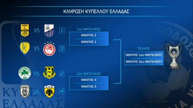 Ηταν αναπόφευκτο να βγάλει ντέρμπι η κληρωτίδα του Κυπέλλου Ελλάδας κι έτσι έγινε. Στους «8» θα κονταροχτυπηθούν οι δύο δικέφαλοι με τον ΠΑΟΚ να υποδέχεται την ΑΕΚ με το πρώτο ματς να γίνεται στην Τούμπα και τη ρεβάνς στο ΟΑΚΑ. Ο Ολυμπιακός θα παίξει με τον Παναιτωλικό πρώτα Αγρίνιο και μετά Καραϊσκάκη, ο Παναθηναϊκός με την Αναγέννηση πρώτα στη Λεωφόρο και ρεβάνς στην Καρδίτσα, ενώ ο Αρης θα αντιμετωπίσει την Λαμία σε «Κ. Βικελίδης» και ΔΑΚ Λαμίας, αντίστοιχα.